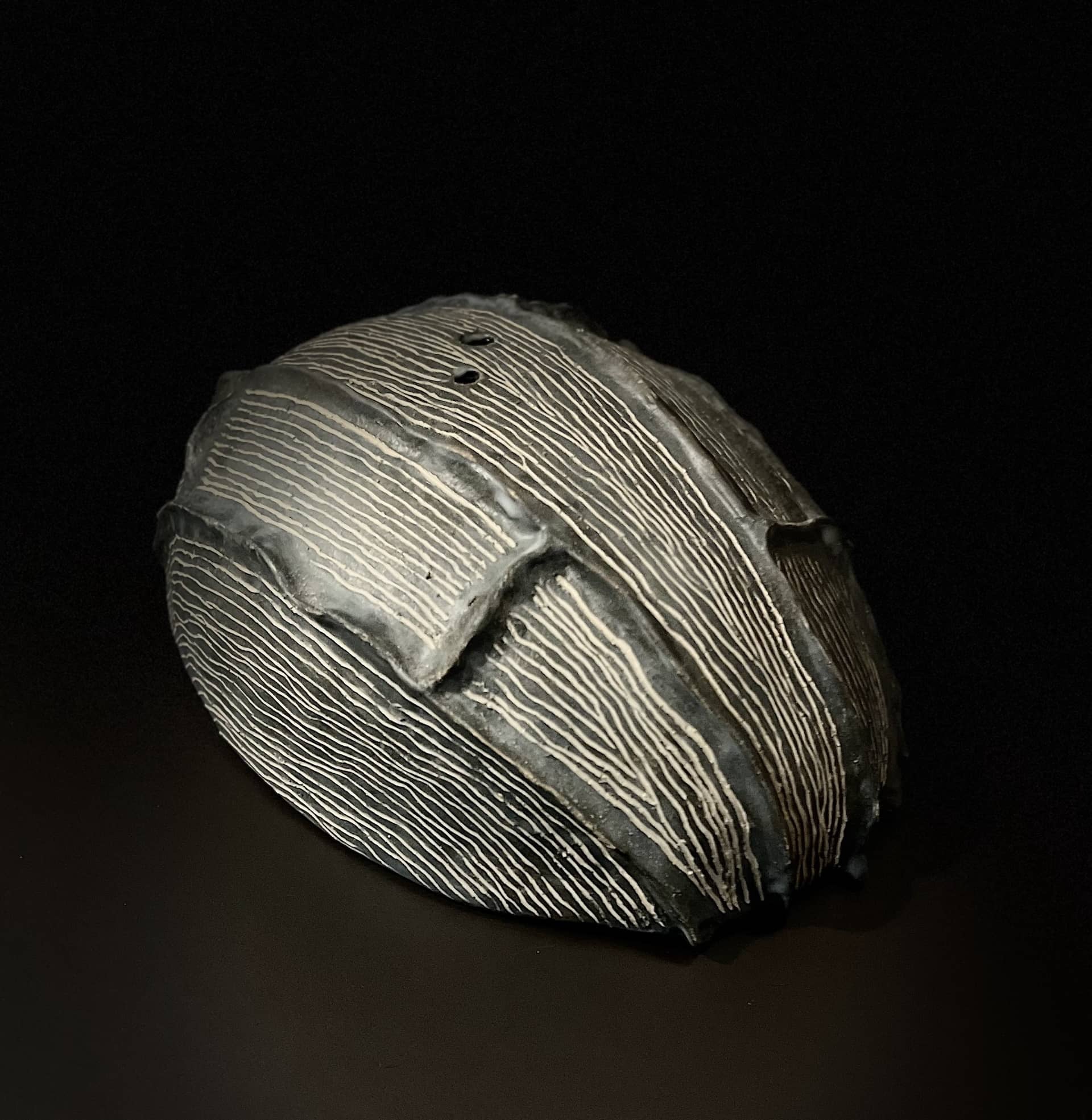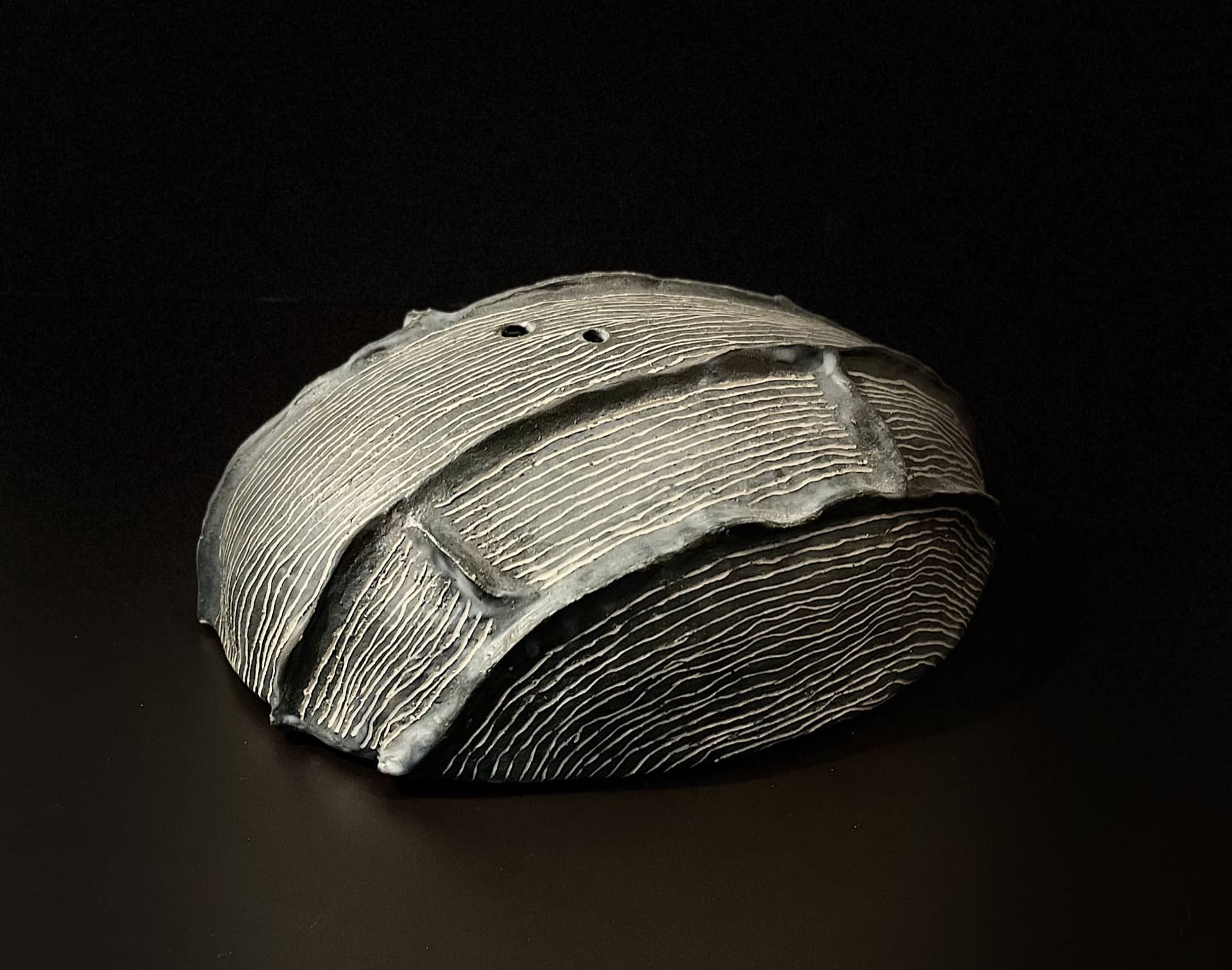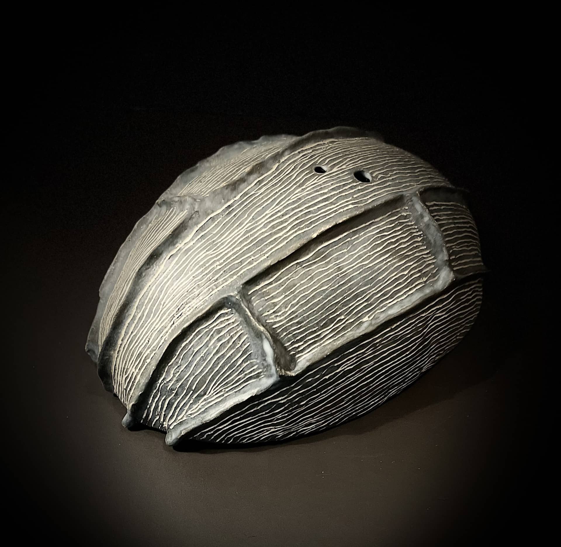 Hand-built in stoneware and finished with a soft glaze, HERBIE takes its cue from the quiet geometry of beetles. The overlapping ridges echo the layered plates of a carapace, giving the piece a compact, creature-like presence. Light moves gently across the glazed surface, revealing fine lines and subtle shifts in texture. A sculptural form that feels both earthy and alive — like a small armored being resting in place.